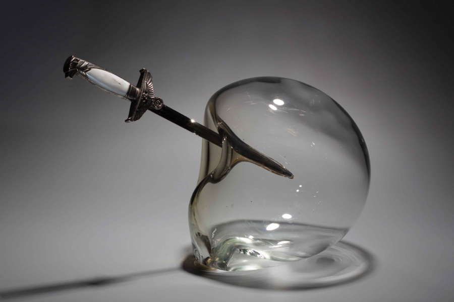 Tierisch / AnimalBlase, am Glasofen frei geformt, Nazi-Dolch / glass free shaped at the furnace & Nazi dagger,ø ca 30cm; 2015;