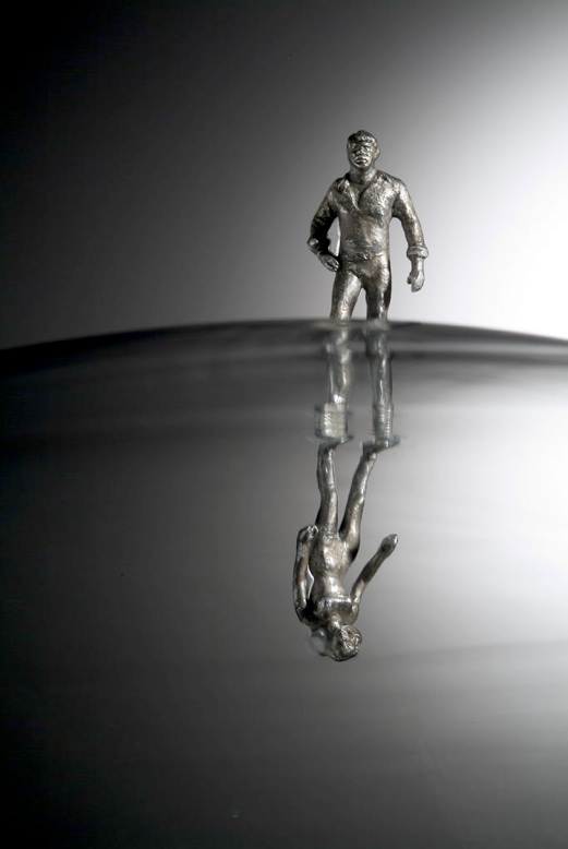 Animus & Anima Glasblase & 2 Figuren, gegossenes Feinsilber, blown bubble at furnace, 2 figures - casted silver, Ø42 x 50cm , 2007