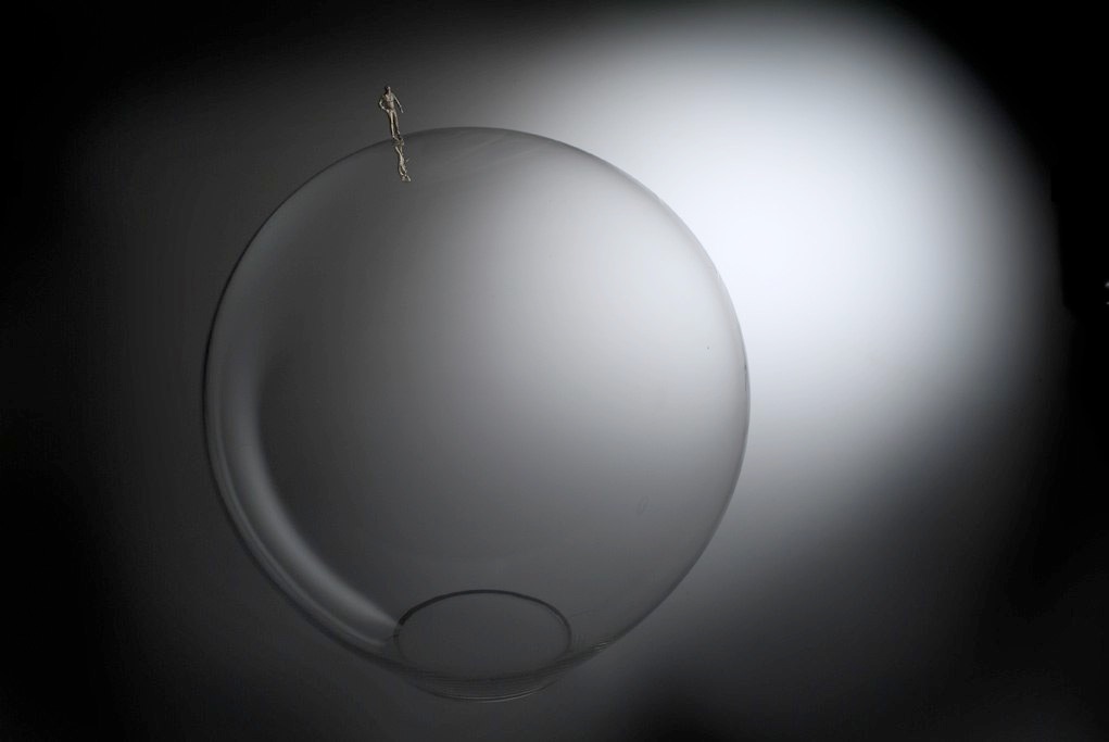 Animus & Anima Glasblase & 2 Figuren, gegossenes Feinsilber, blown bubble at furnace, 2 figures - casted silver, Ø42 x 50cm , 2007